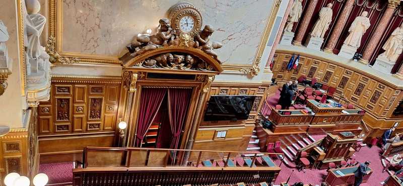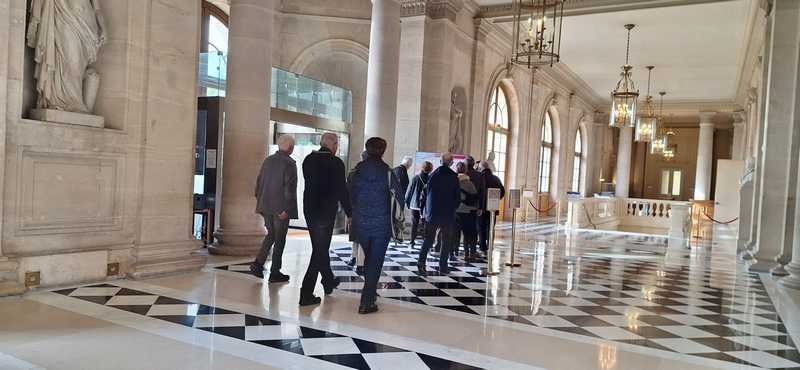 Mais il est l’heure, un guide du Sénat nous attend pour les premières explications, le passage du contrôle et une riche déambulation sous « les ors de la République », couloirs, escaliers, salle du livre d’or, bibliothèque, salle des conférences, l’hémicycle…sans oublier la photo traditionnelle dans le grand escalier d’honneur avec le sénateur de l’Allier Monsieur Claude Malhuret