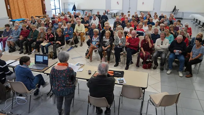Thierry Vatrinet, président de la Retraite Sportive de Bellerive, a présenté le bilan de la saison écoulée et le programme de la saison 2025-2026 devant une salle remplie d’adhérents et futurs adhérents.